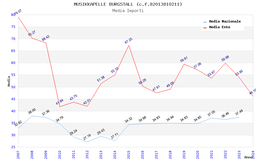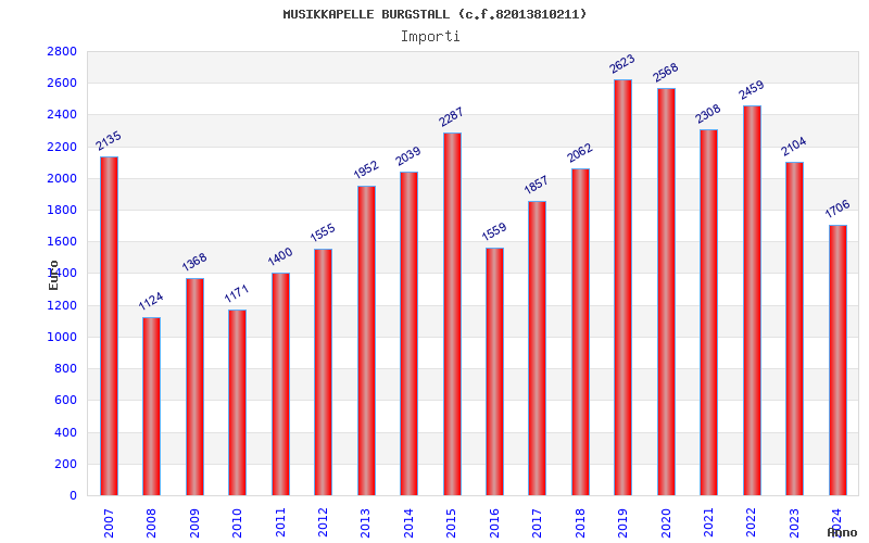 | Anno | Firme | Importi | Media | Naz. | Reg. | Prov. | Comu. |