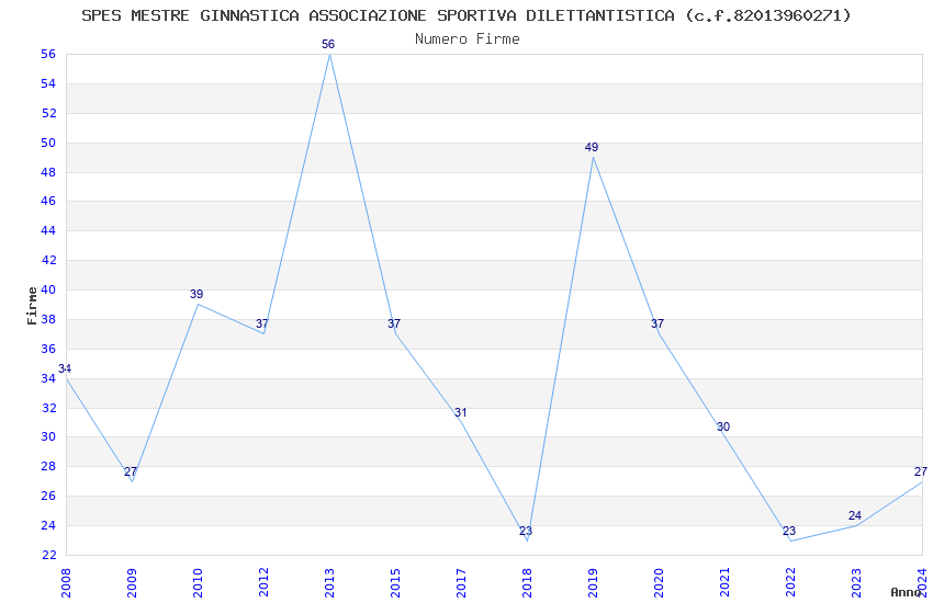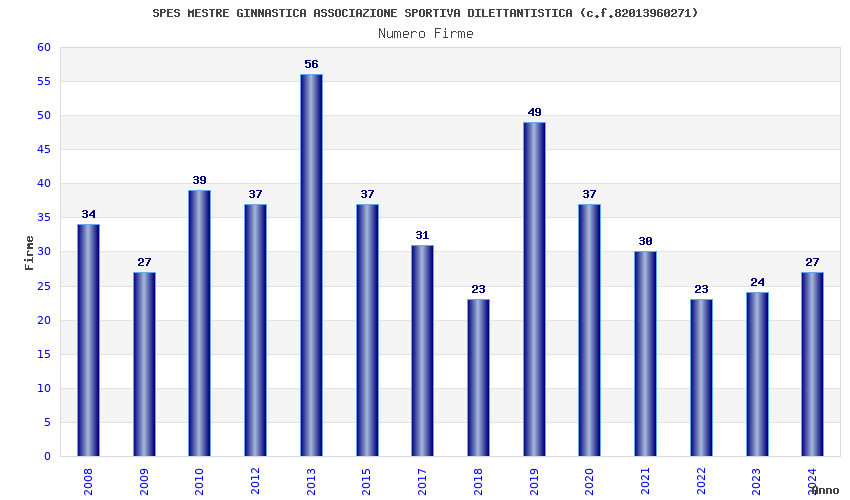 | Anno | Firme | Importi | Media | Naz. | Reg. | Prov. | Comu. |
