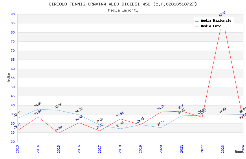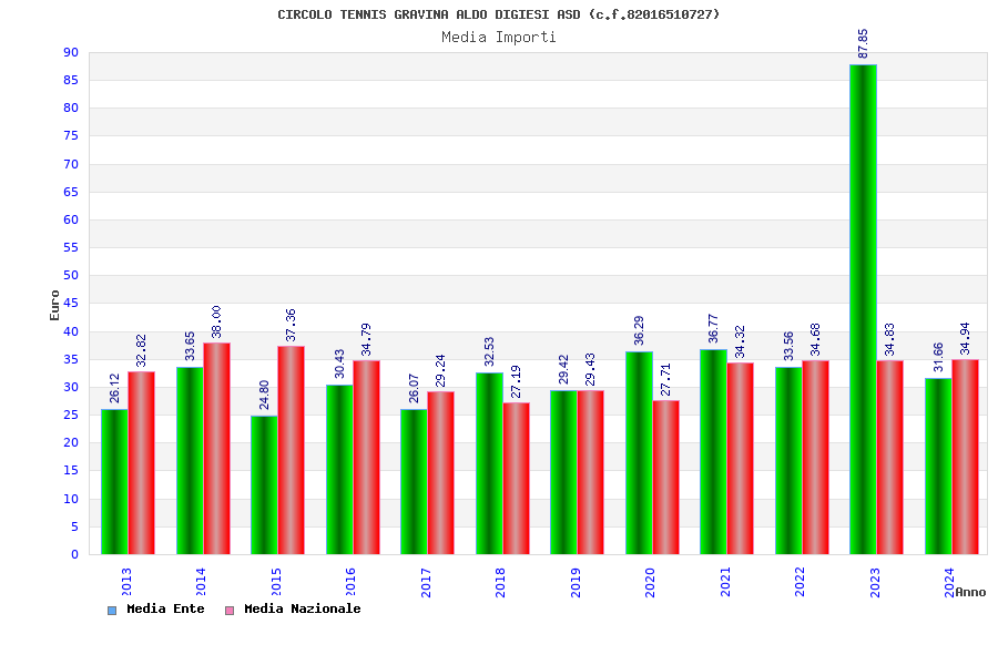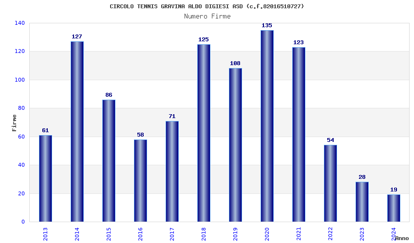 | Anno | Firme | Importi | Media | Naz. | Reg. | Prov. | Comu. |
