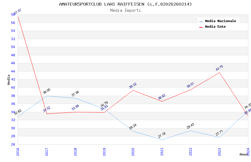 | Anno | Firme | Importi | Media | Naz. | Reg. | Prov. | Comu. |