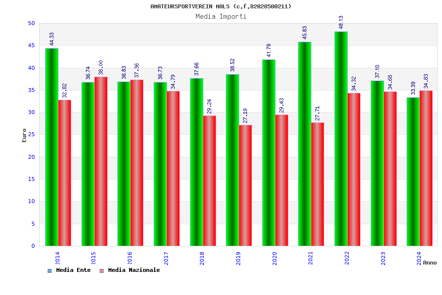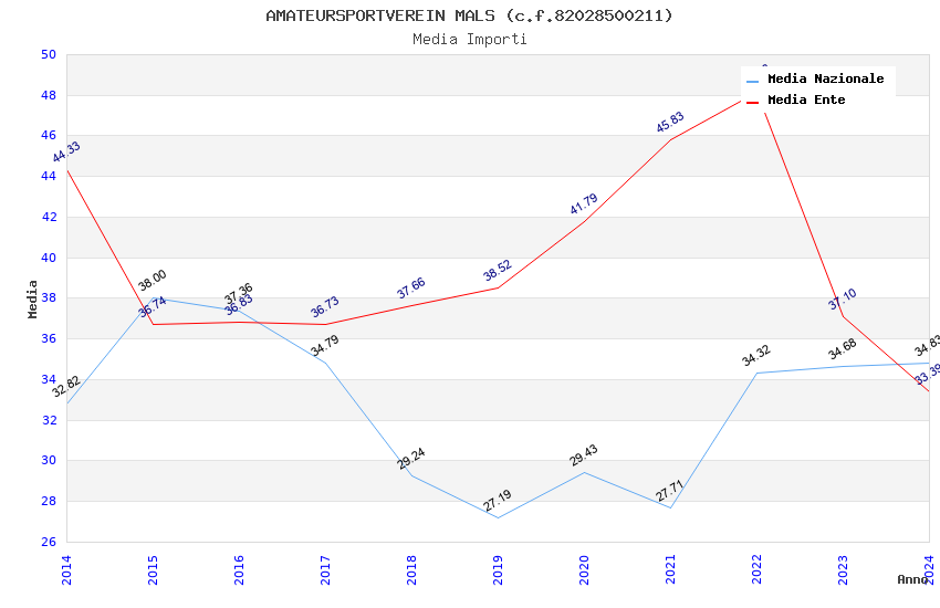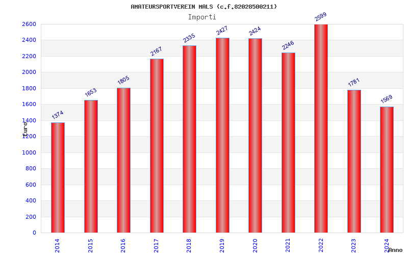 | Anno | Firme | Importi | Media | Naz. | Reg. | Prov. | Comu. |