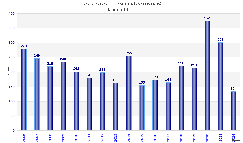 | 2024 | 134 | 3.873,92 | 28,91 | 13.831 | 330 | 73 | 20 |