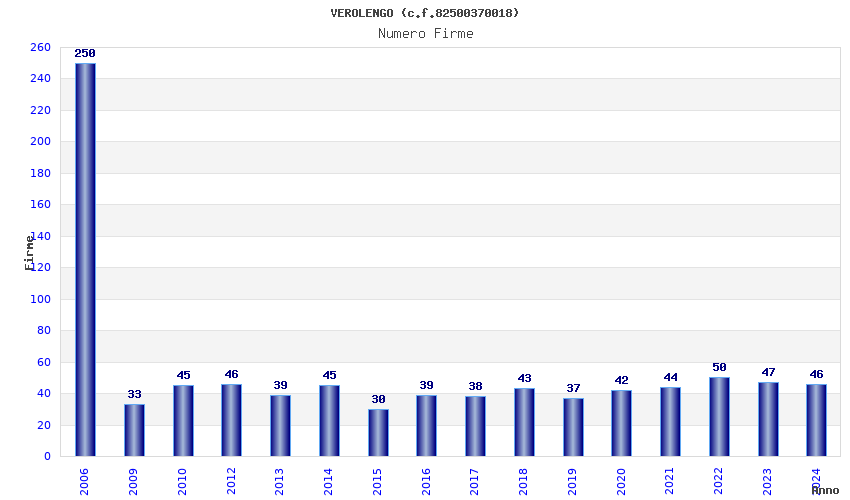 | Anno | Firme | Importi | Media | Naz. | Reg. | Prov. | Comu. |