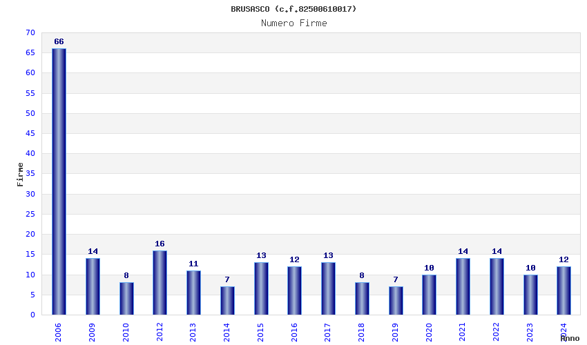 | Anno | Firme | Importi | Media | Naz. | Reg. | Prov. | Comu. |