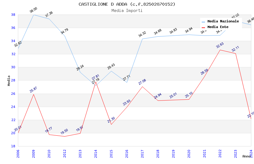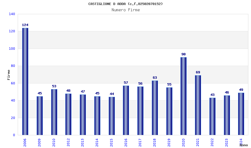 | Anno | Firme | Importi | Media | Naz. | Reg. | Prov. | Comu. |