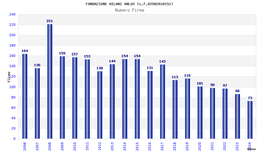 | Anno | Firme | Importi | Media | Naz. | Reg. | Prov. | Comu. |