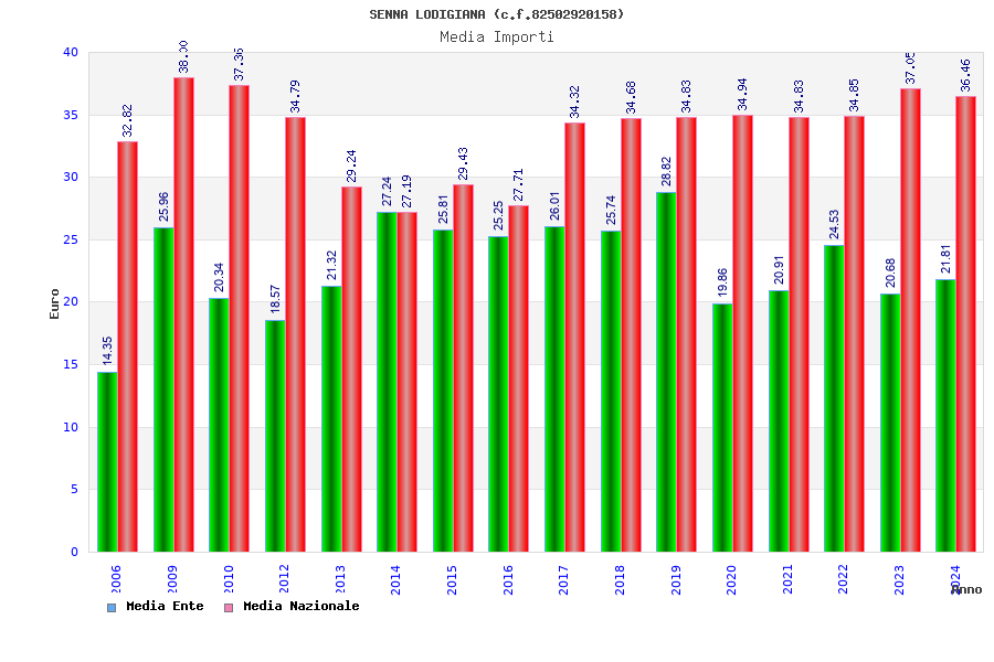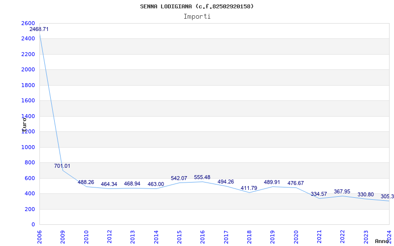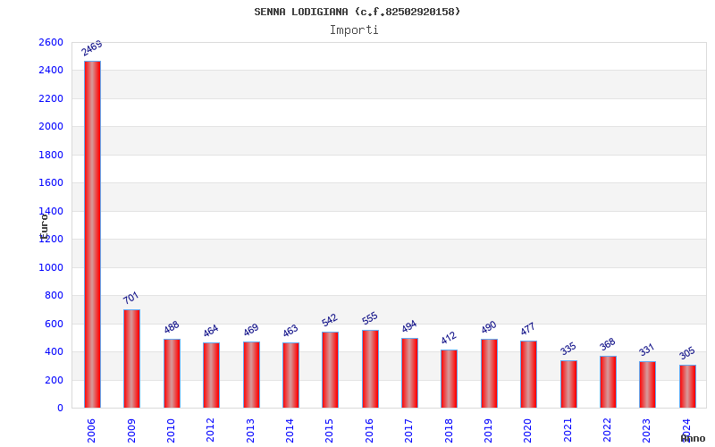 | Anno | Firme | Importi | Media | Naz. | Reg. | Prov. | Comu. |