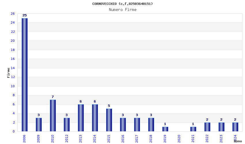 | Anno | Firme | Importi | Media | Naz. | Reg. | Prov. | Comu. |