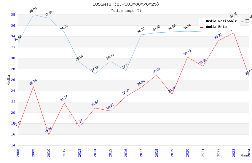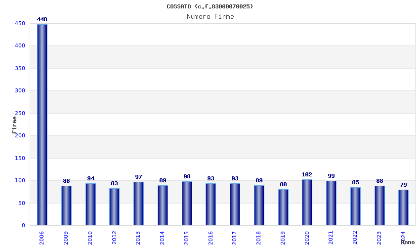 | Anno | Firme | Importi | Media | Naz. | Reg. | Prov. | Comu. |