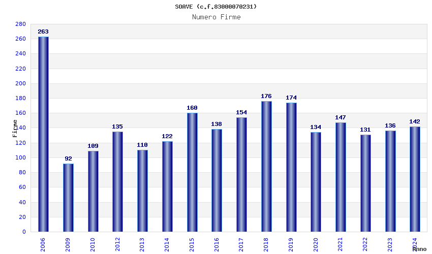 Anno Firme Importi Media Naz. Reg. Prov. Comu.