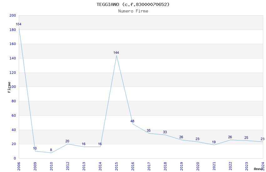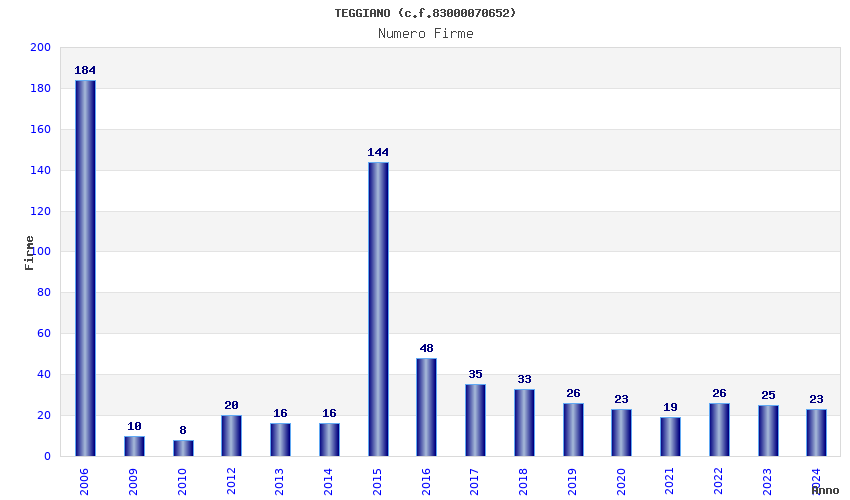 Anno Firme Importi Media Naz. Reg. Prov. Comu.