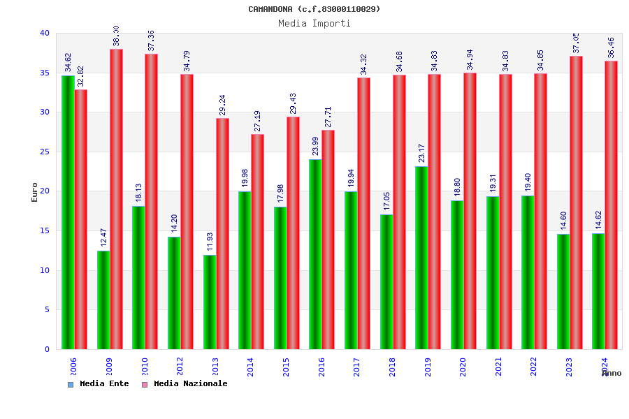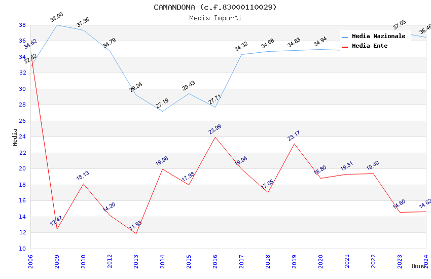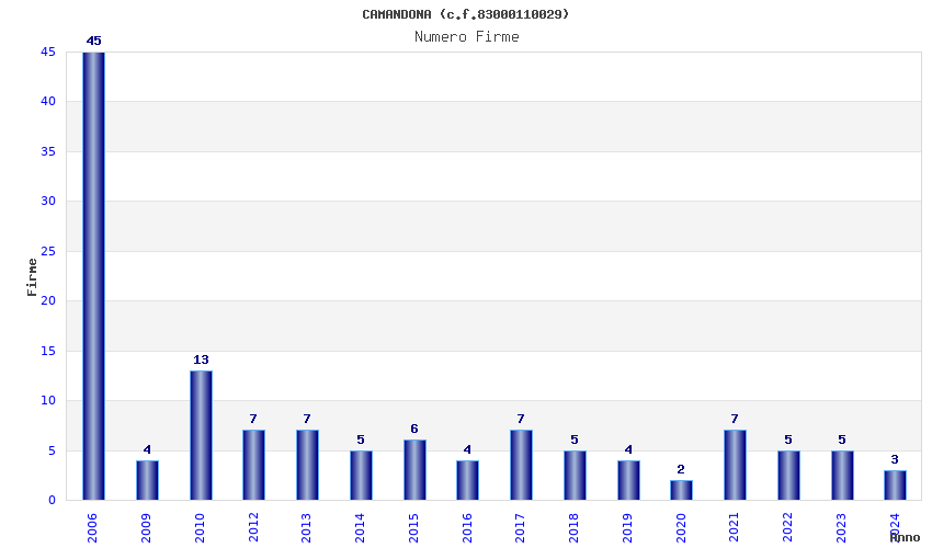 | Anno | Firme | Importi | Media | Naz. | Reg. | Prov. | Comu. |