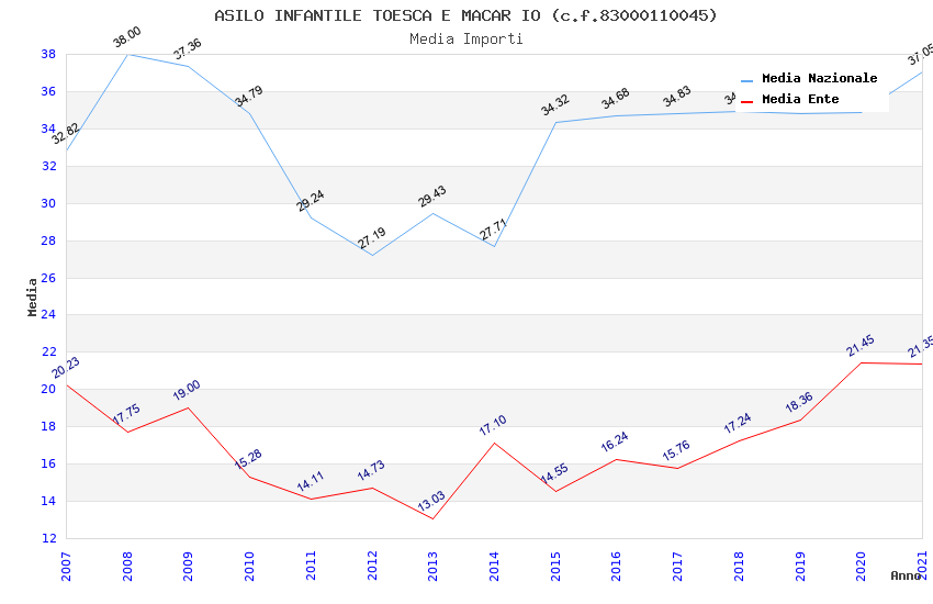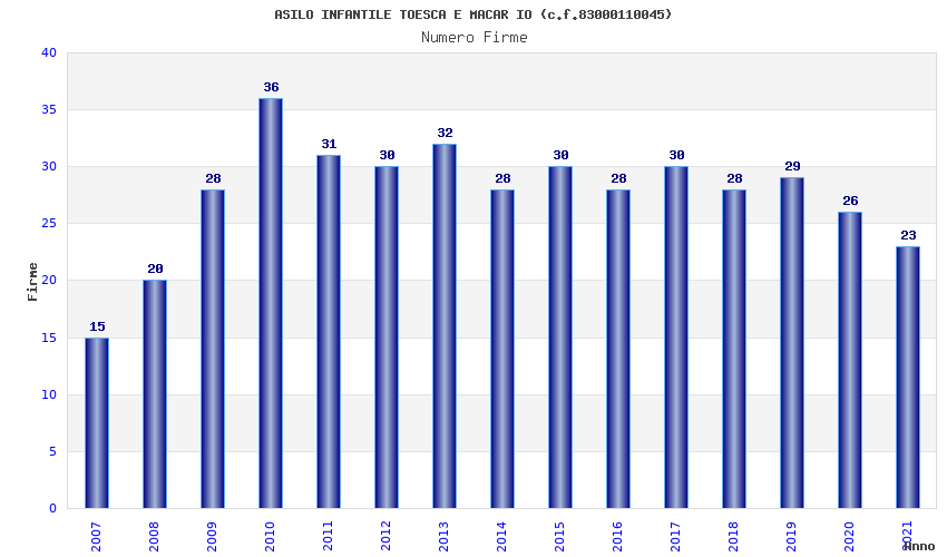 | Anno | Firme | Importi | Media | Naz. | Reg. | Prov. | Comu. |