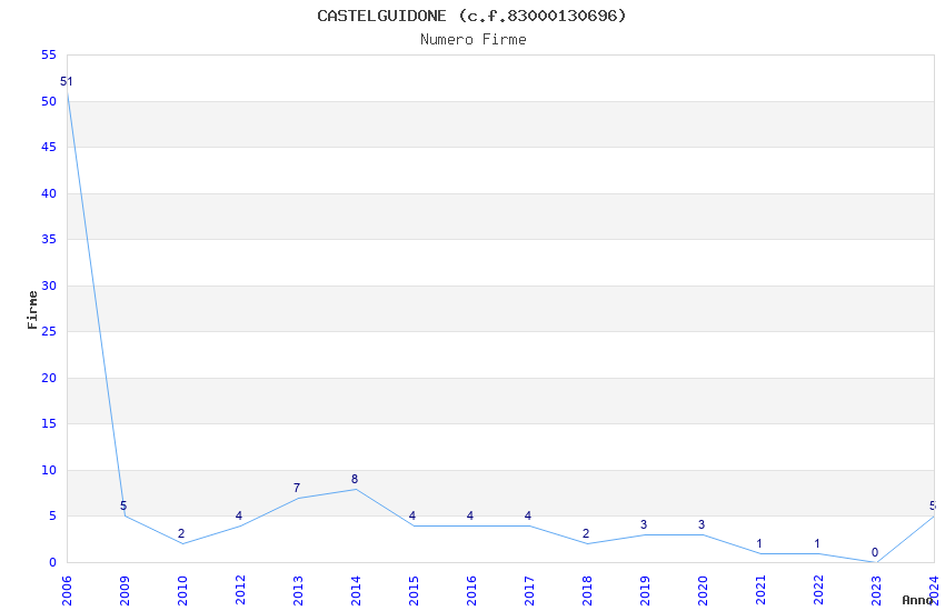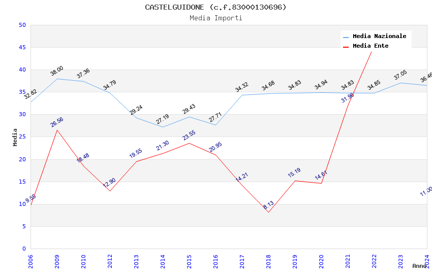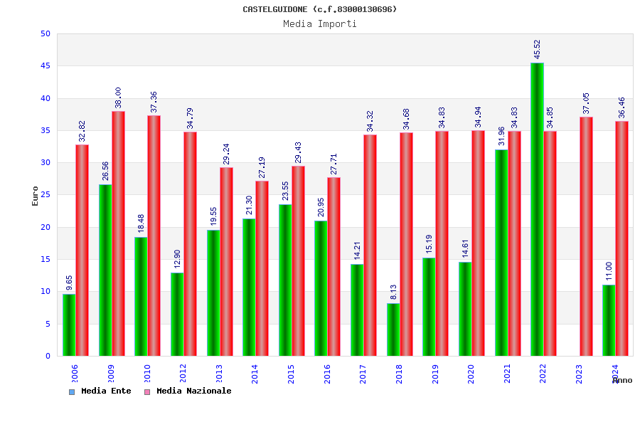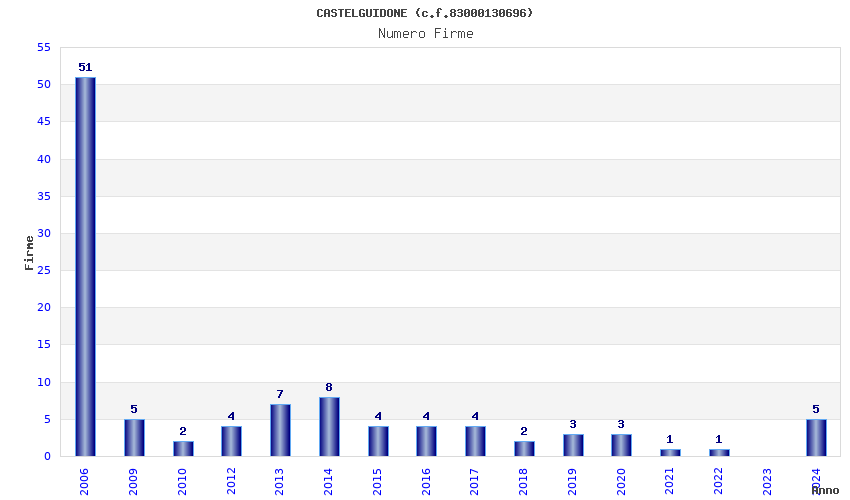 | Anno | Firme | Importi | Media | Naz. | Reg. | Prov. | Comu. |