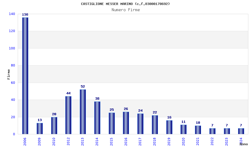| Anno | Firme | Importi | Media | Naz. | Reg. | Prov. | Comu. |