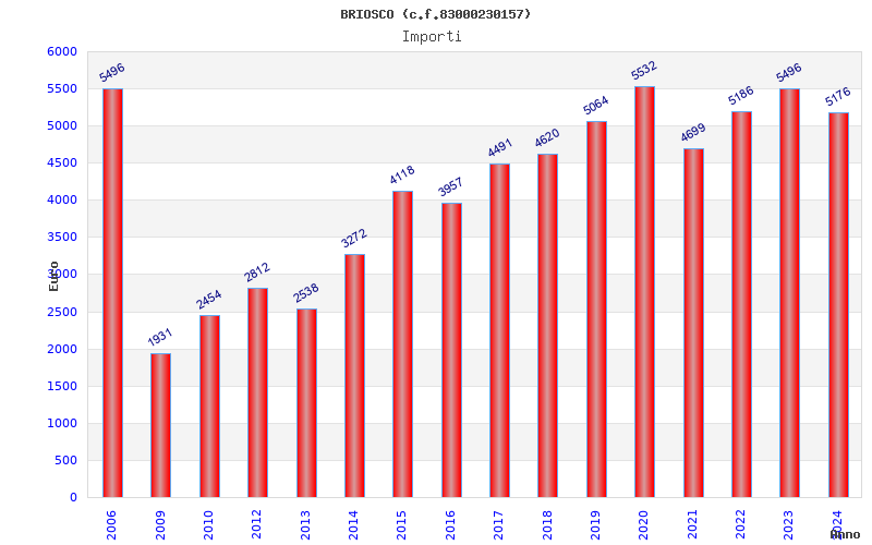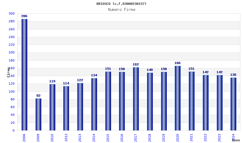| Anno | Firme | Importi | Media | Naz. | Reg. | Prov. | Comu. |