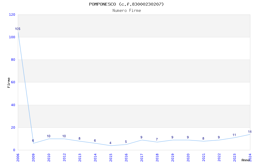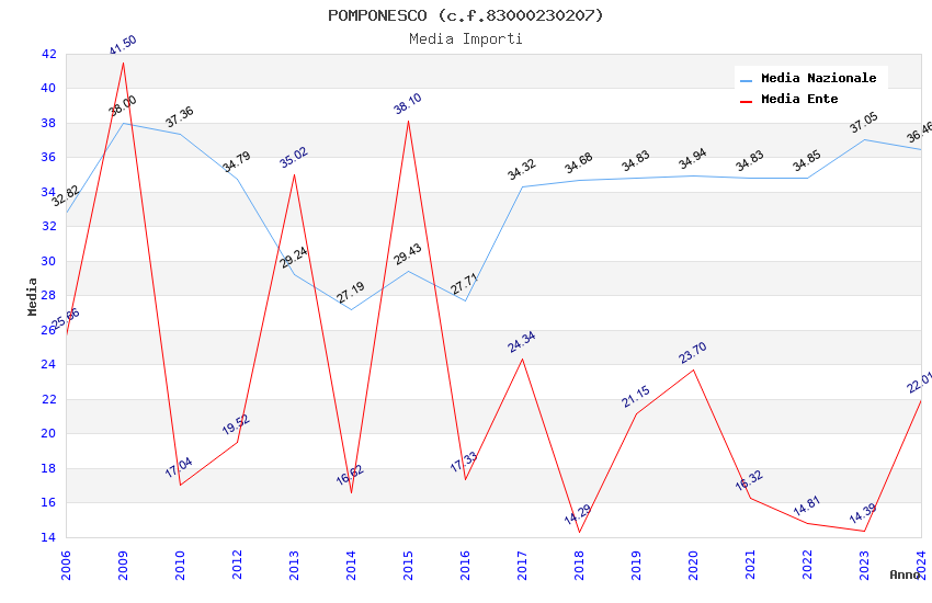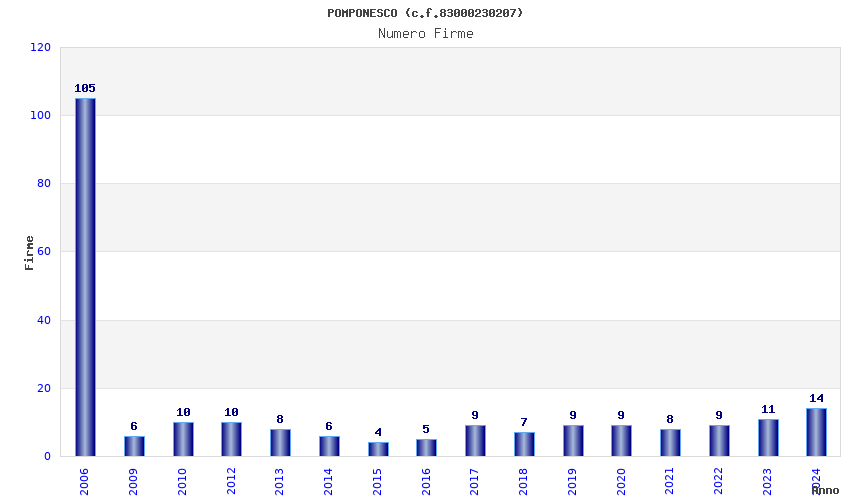 | Anno | Firme | Importi | Media | Naz. | Reg. | Prov. | Comu. |