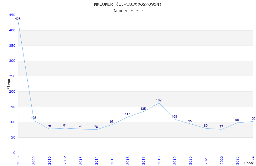 | 2018 | 162 | 3.461,50 | 21,37 | 15.454 | 263 | 33 | 3 |