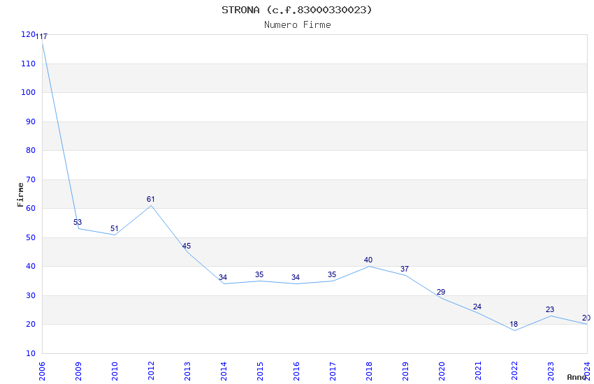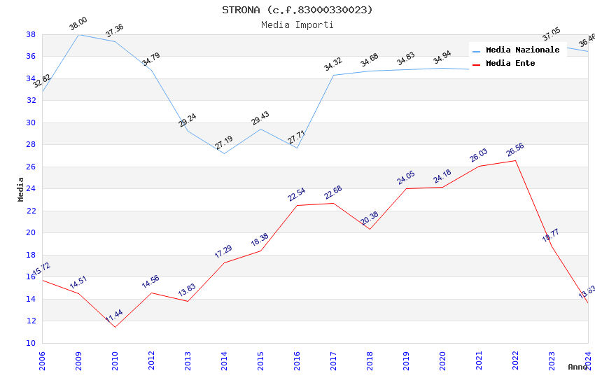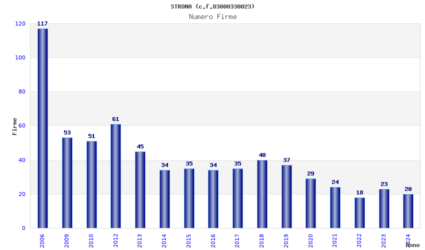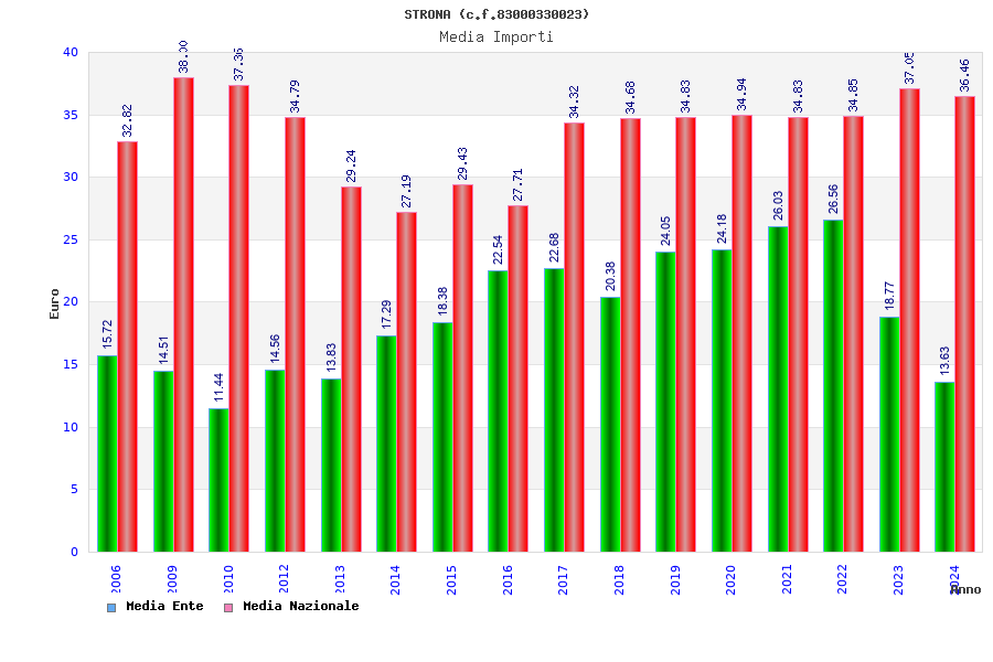 | Anno | Firme | Importi | Media | Naz. | Reg. | Prov. | Comu. |