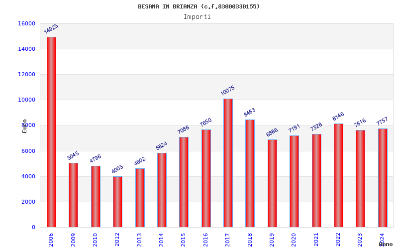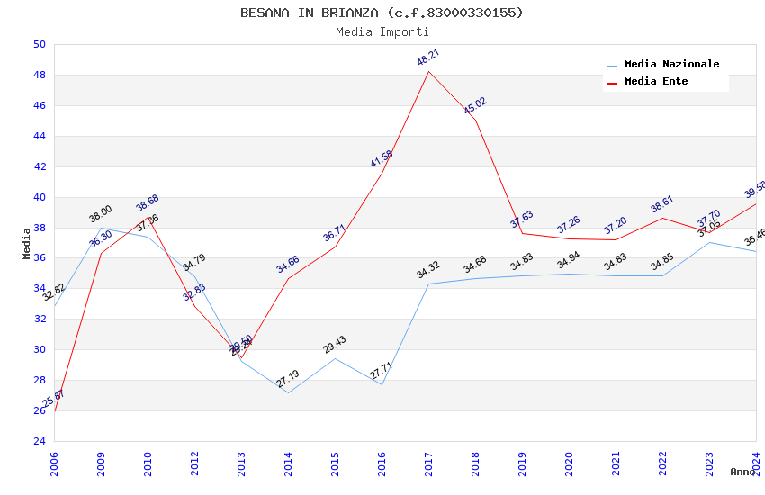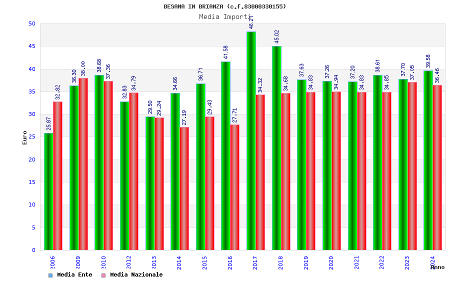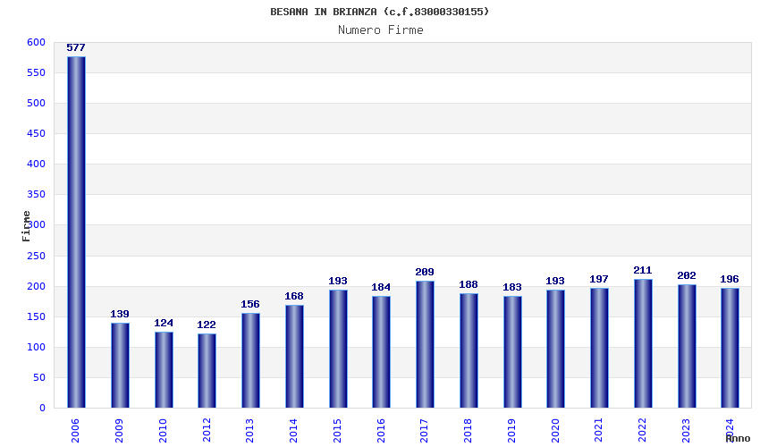 | Anno | Firme | Importi | Media | Naz. | Reg. | Prov. | Comu. |