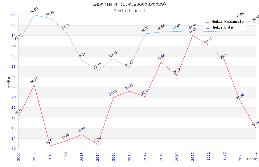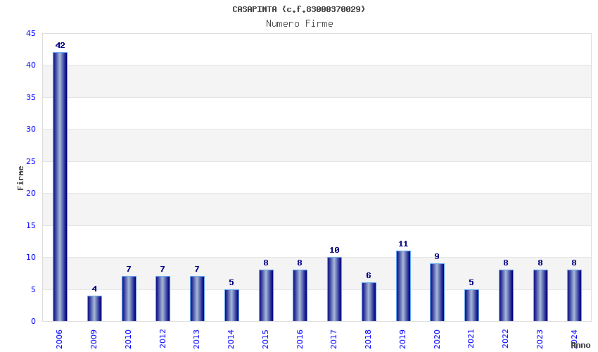 | Anno | Firme | Importi | Media | Naz. | Reg. | Prov. | Comu. |