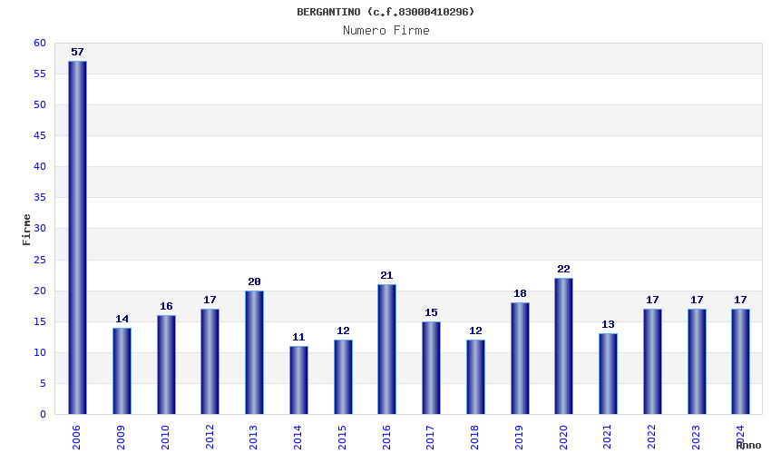 Anno Firme Importi Media Naz. Reg. Prov. Comu.