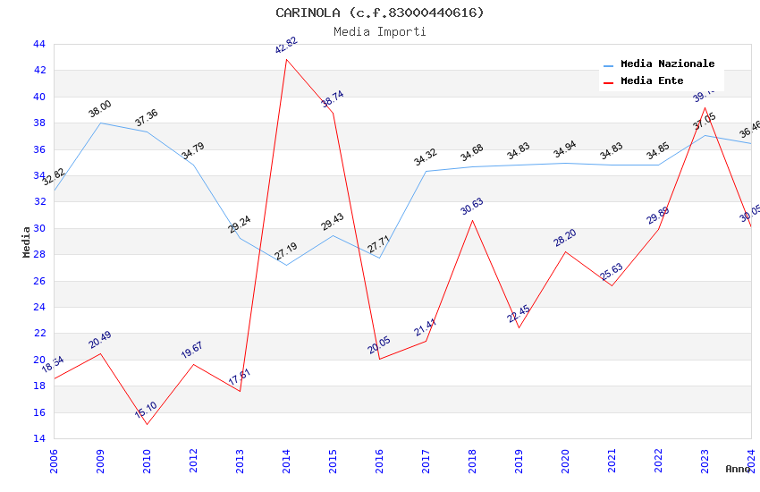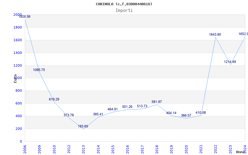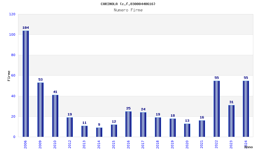 | Anno | Firme | Importi | Media | Naz. | Reg. | Prov. | Comu. |