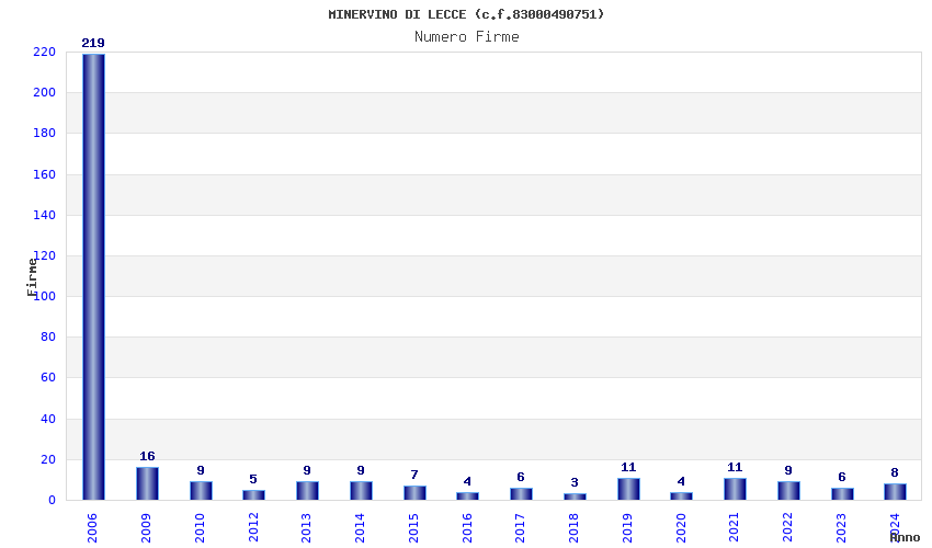 | 2006 | 219 | 2.600,05 | 11,87 | 13.084 | 503 | 108 | 1 |