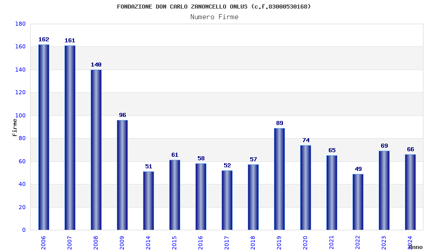 | Anno | Firme | Importi | Media | Naz. | Reg. | Prov. | Comu. |