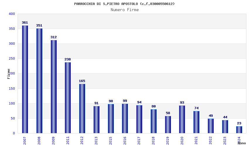 | Anno | Firme | Importi | Media | Naz. | Reg. | Prov. | Comu. |