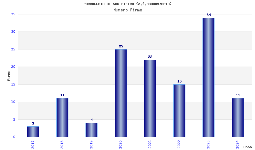 | Anno | Firme | Importi | Media | Naz. | Reg. | Prov. | Comu. |
