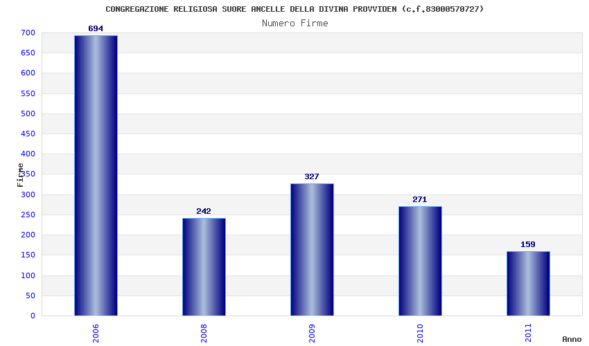 | Anno | Firme | Importi | Media | Naz. | Reg. | Prov. | Comu. |