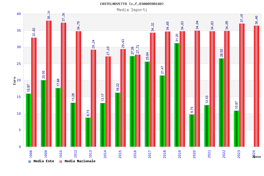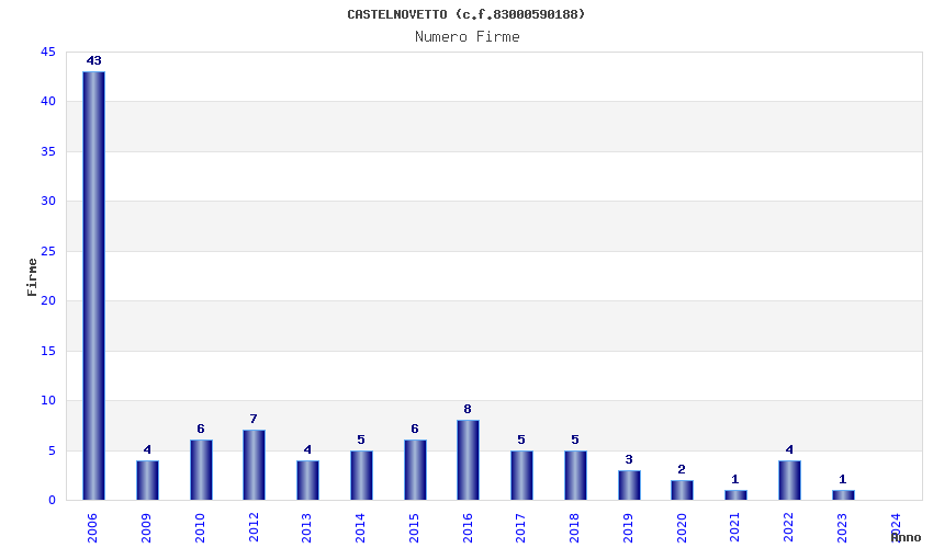 | Anno | Firme | Importi | Media | Naz. | Reg. | Prov. | Comu. |