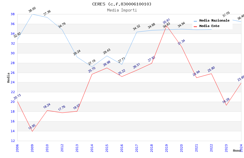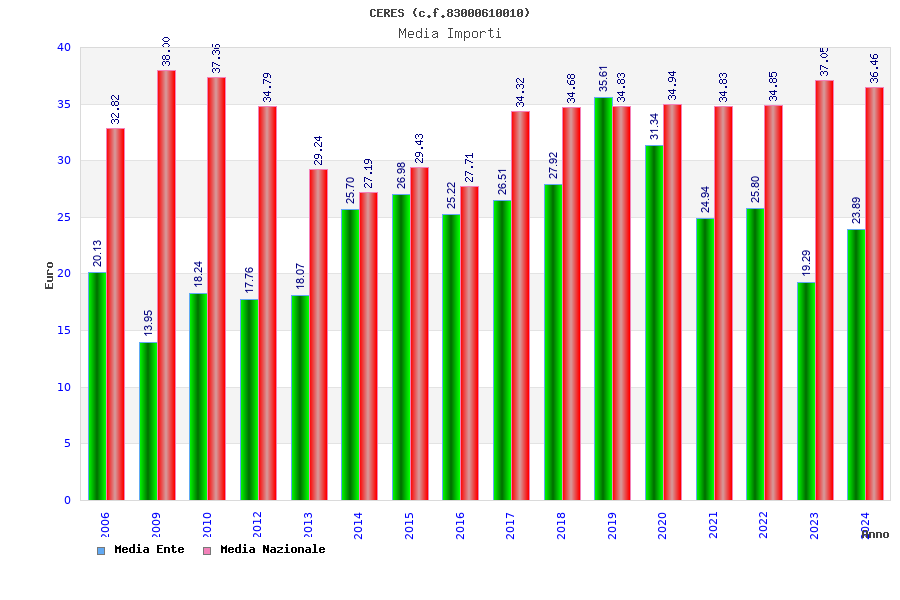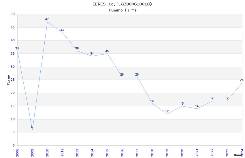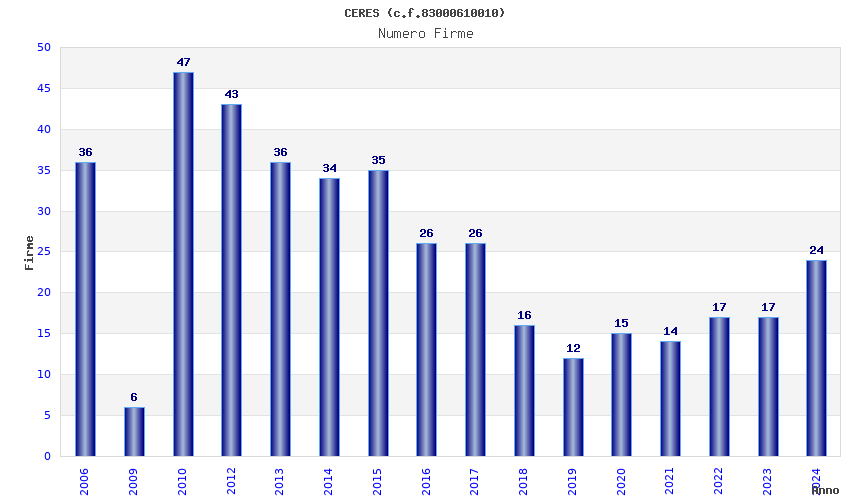 | Anno | Firme | Importi | Media | Naz. | Reg. | Prov. | Comu. |