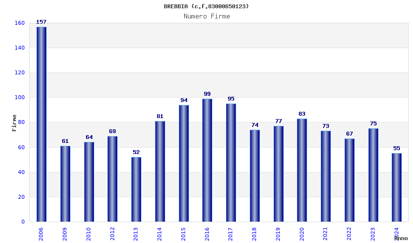 | Anno | Firme | Importi | Media | Naz. | Reg. | Prov. | Comu. |