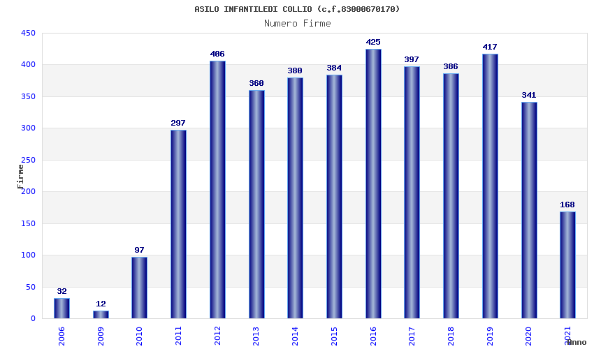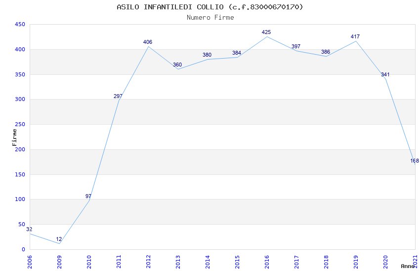 | Anno | Firme | Importi | Media | Naz. | Reg. | Prov. | Comu. |