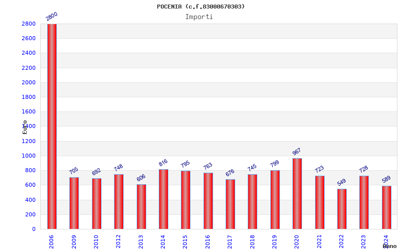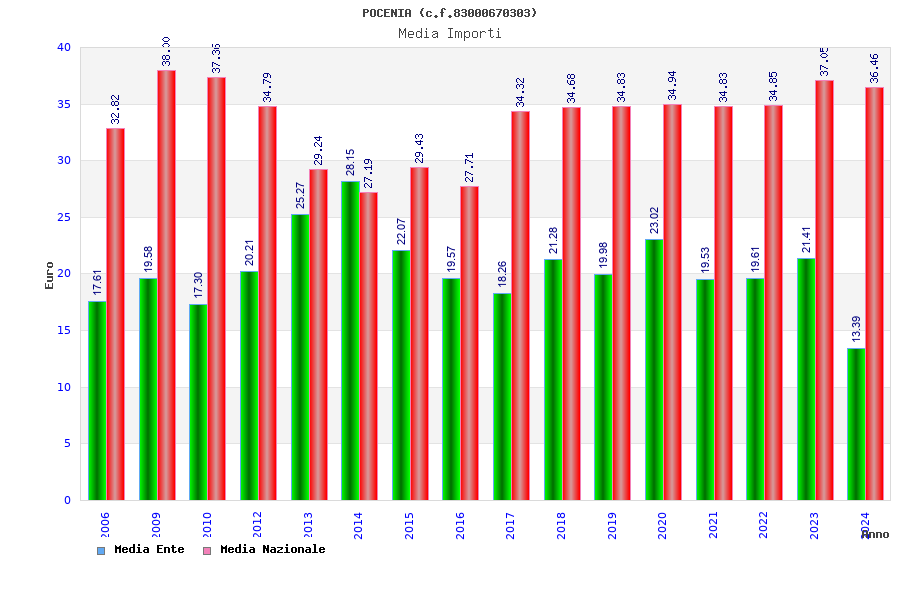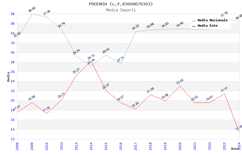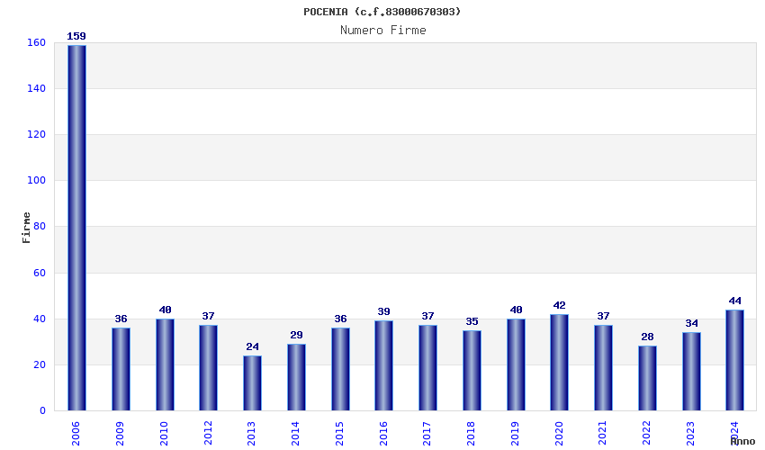 | Anno | Firme | Importi | Media | Naz. | Reg. | Prov. | Comu. |