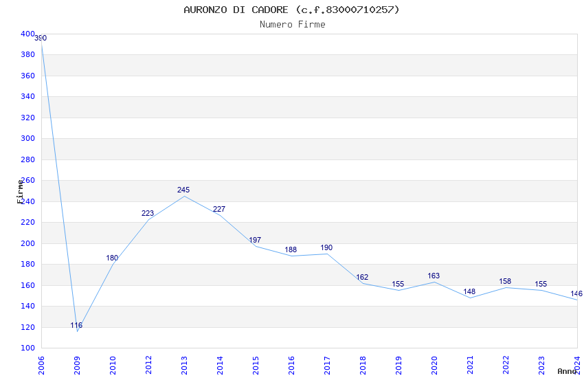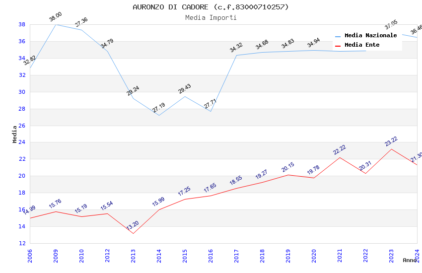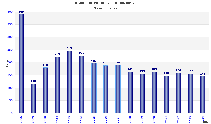 | Anno | Firme | Importi | Media | Naz. | Reg. | Prov. | Comu. |
