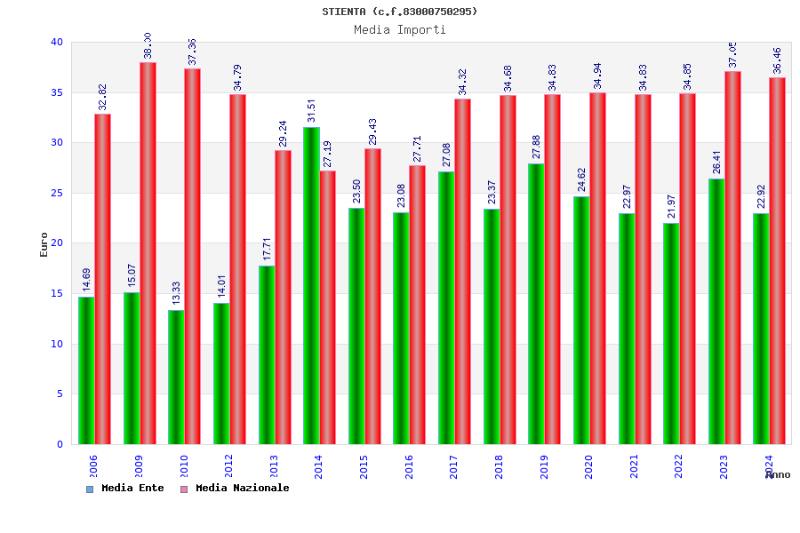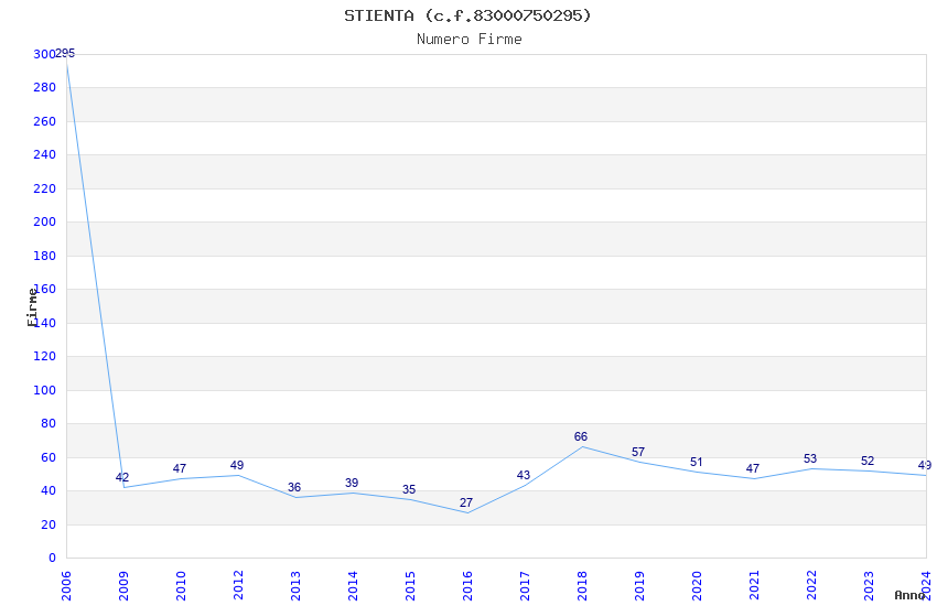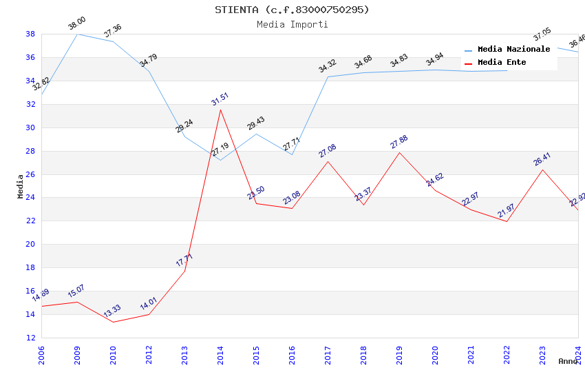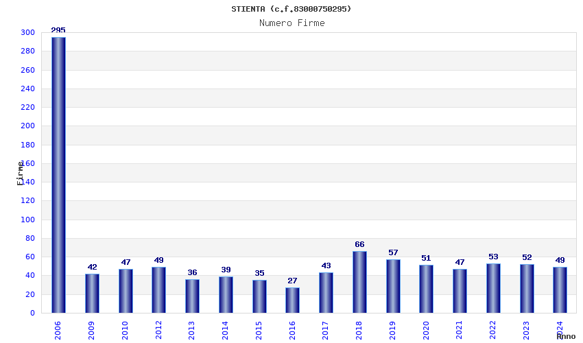 | Anno | Firme | Importi | Media | Naz. | Reg. | Prov. | Comu. |