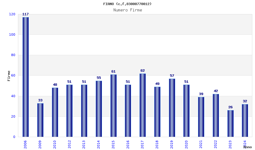 Anno Firme Importi Media Naz. Reg. Prov. Comu.