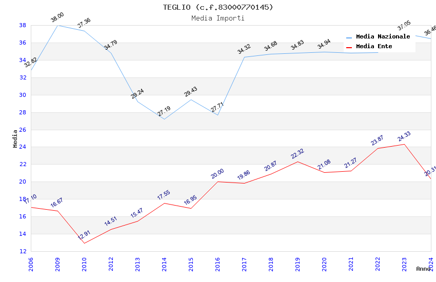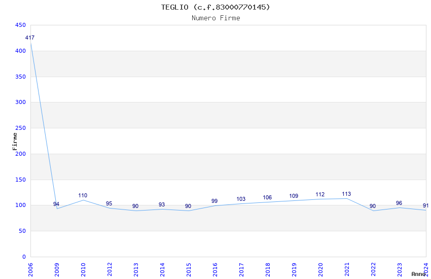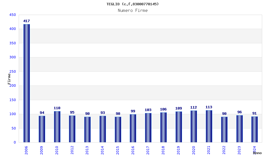 | Anno | Firme | Importi | Media | Naz. | Reg. | Prov. | Comu. |