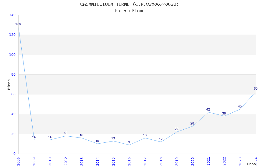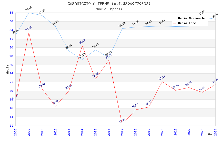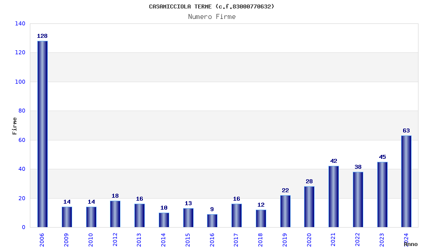 | Anno | Firme | Importi | Media | Naz. | Reg. | Prov. | Comu. |