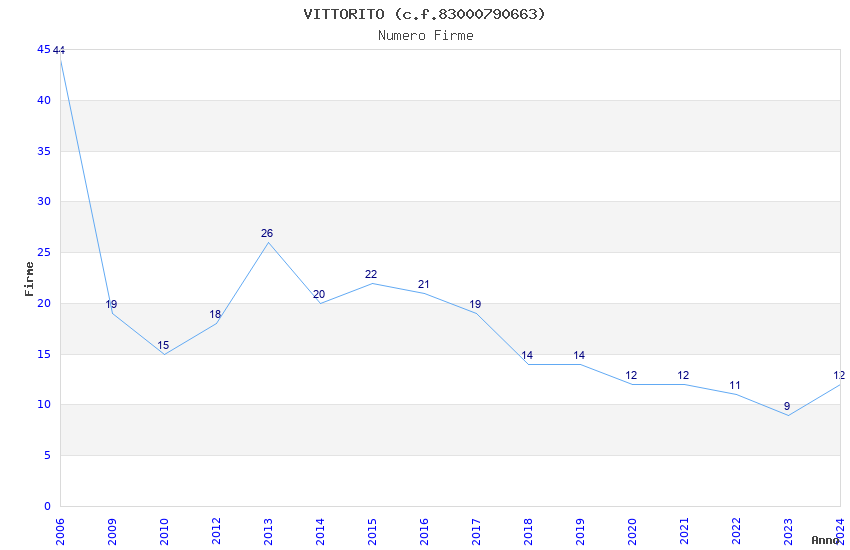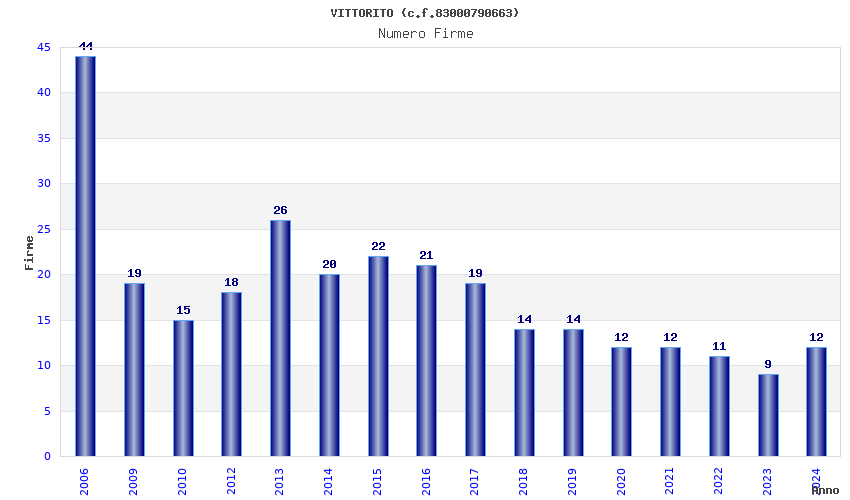 | Anno | Firme | Importi | Media | Naz. | Reg. | Prov. | Comu. |