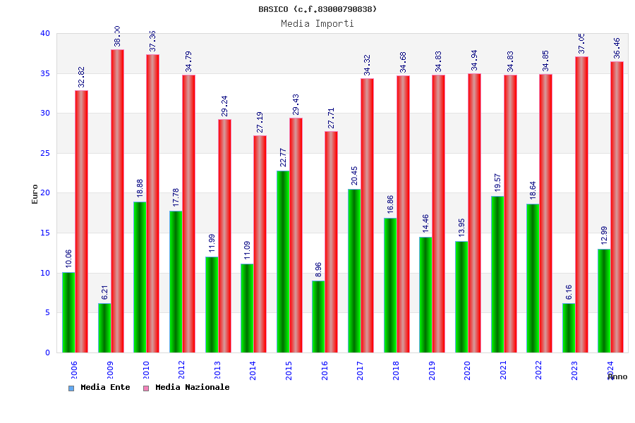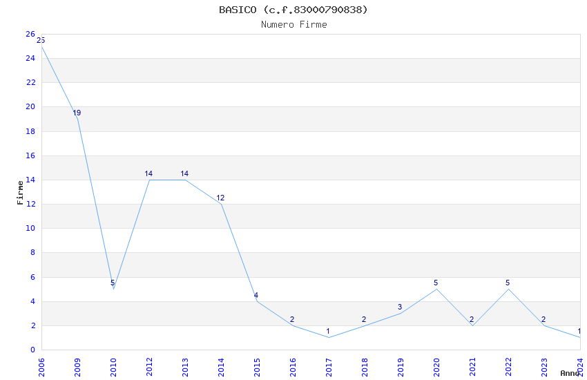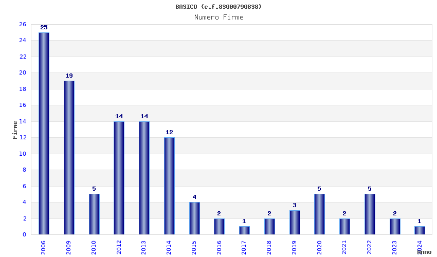 | Anno | Firme | Importi | Media | Naz. | Reg. | Prov. | Comu. |
