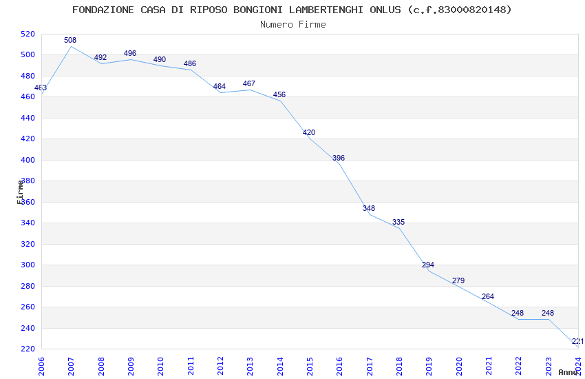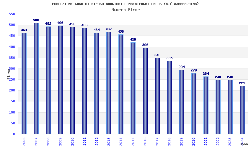 | Anno | Firme | Importi | Media | Naz. | Reg. | Prov. | Comu. |