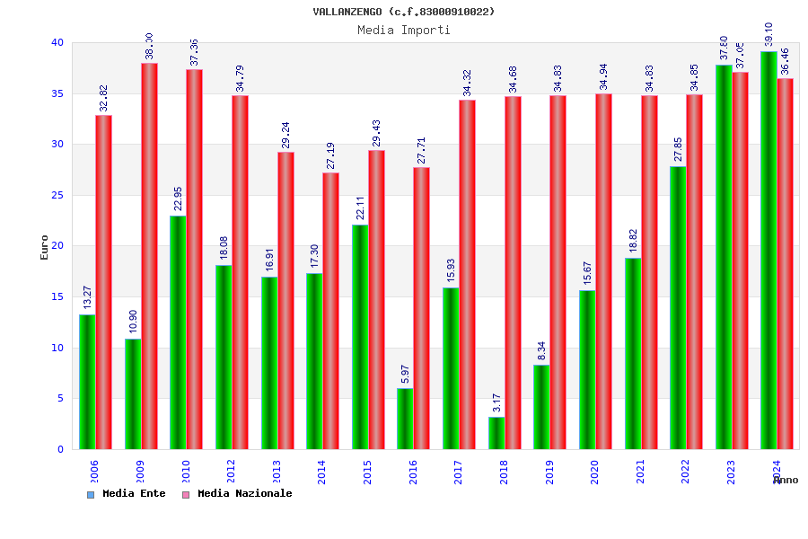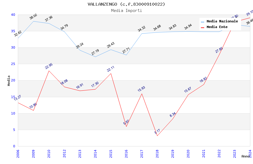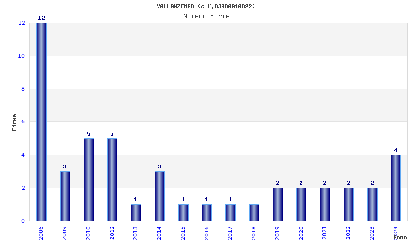 | Anno | Firme | Importi | Media | Naz. | Reg. | Prov. | Comu. |