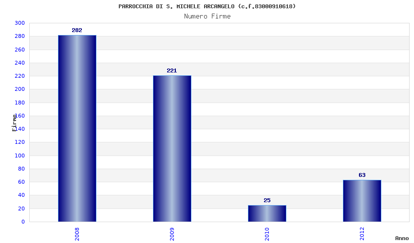 | Anno | Firme | Importi | Media | Naz. | Reg. | Prov. | Comu. |