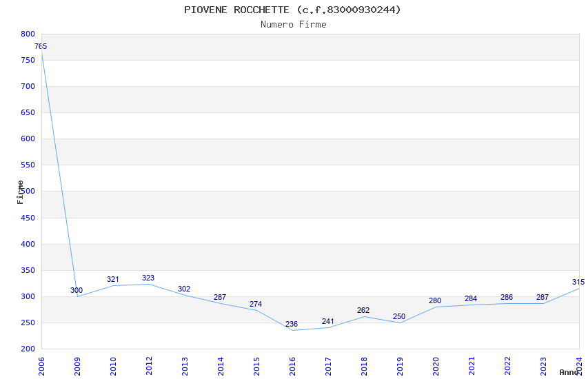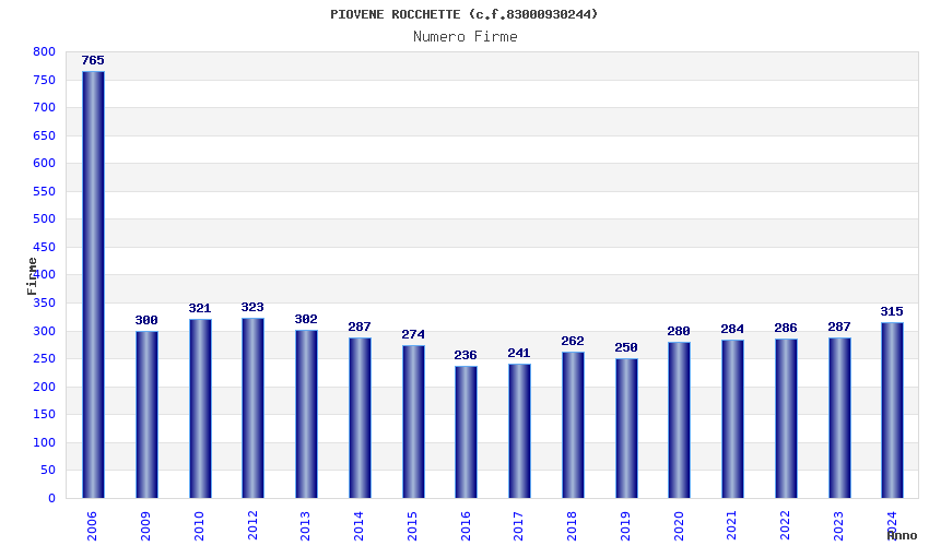 | Anno | Firme | Importi | Media | Naz. | Reg. | Prov. | Comu. |
