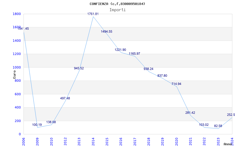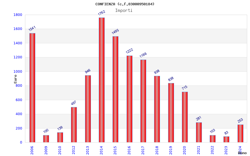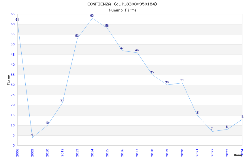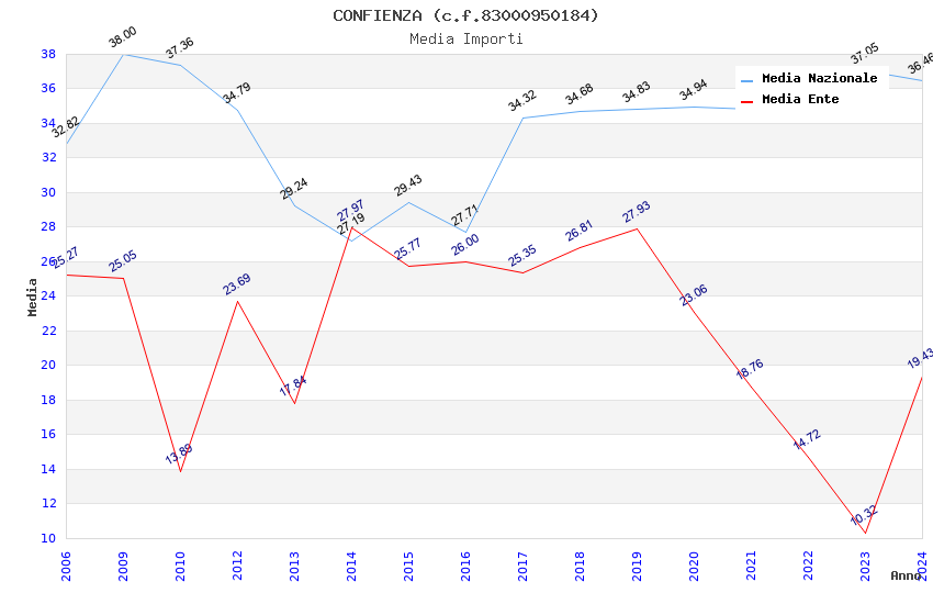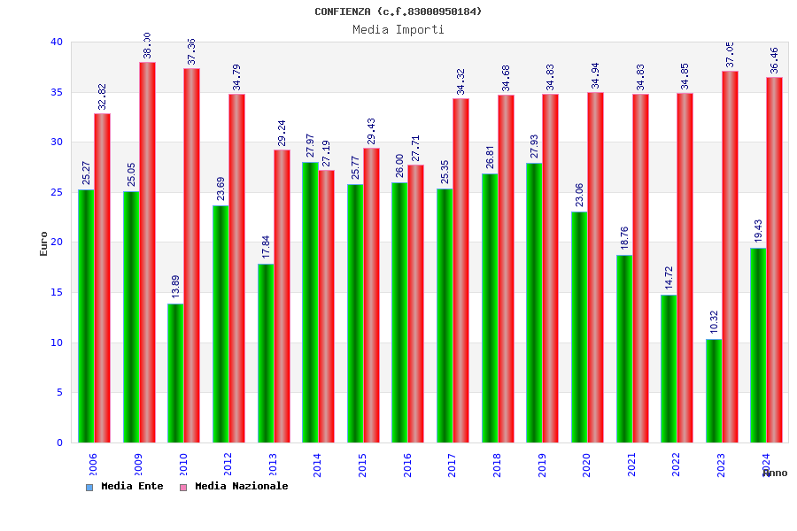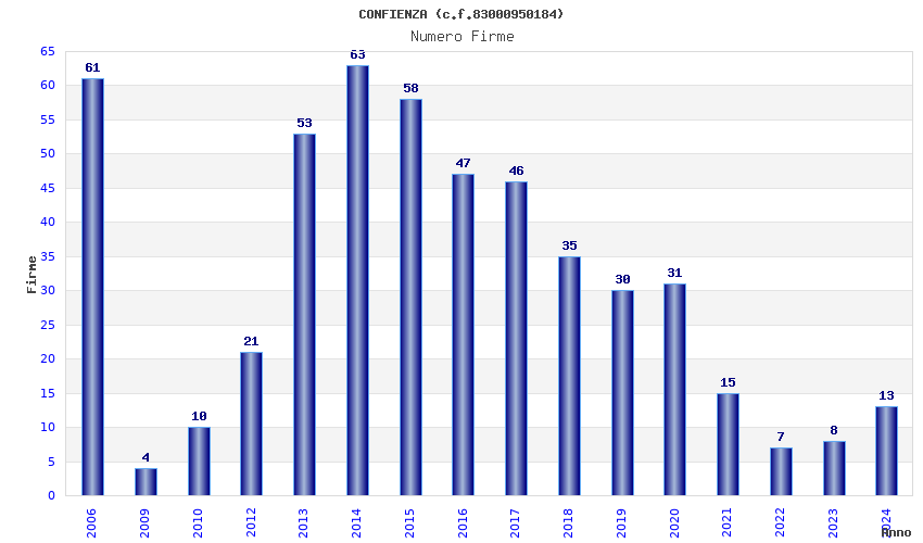 | Anno | Firme | Importi | Media | Naz. | Reg. | Prov. | Comu. |