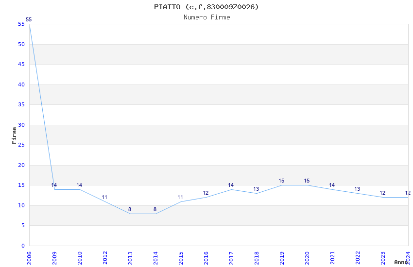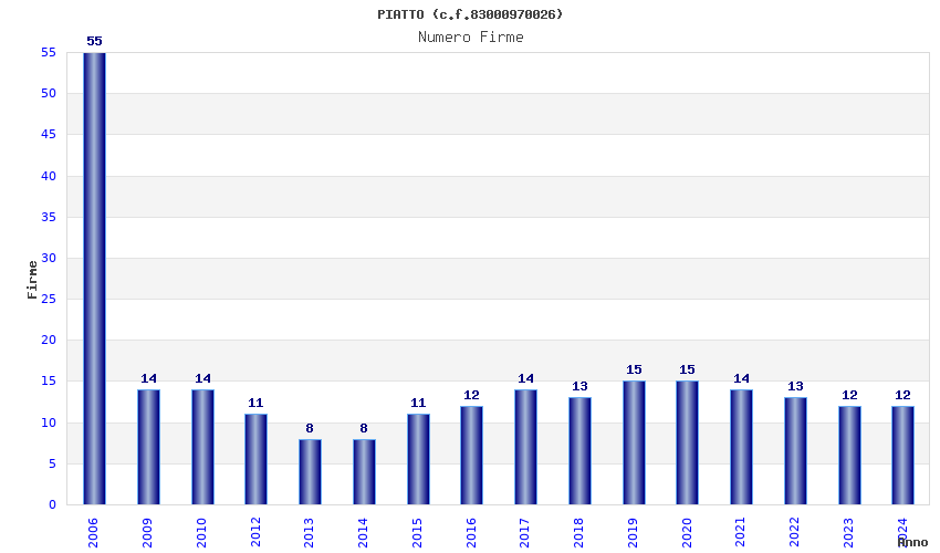 | Anno | Firme | Importi | Media | Naz. | Reg. | Prov. | Comu. |